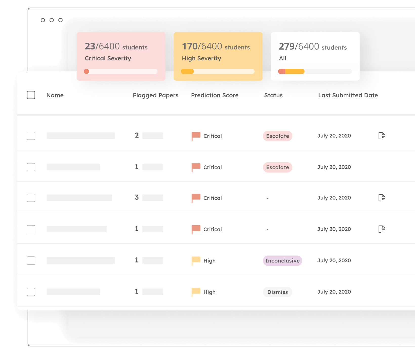 Krijg onmiddellijk zicht op mogelijke gevallen van contract cheating met een gebruiksvriendelijk dashboard en rapporten met veel data.